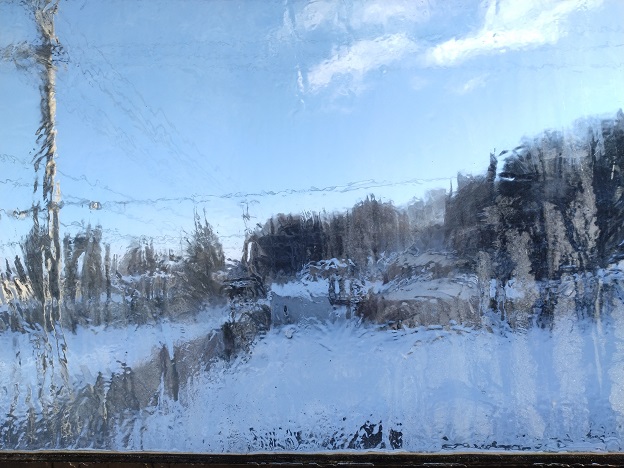 透明な窓ガラスが昭和のレトロガラスのようになってます